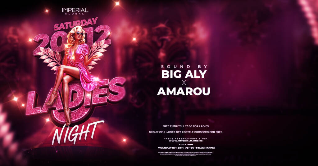 Am Samstag, den 20. Dezember, steht das Imperial Mainz ganz im Zeichen der Ladies Night. In glamouröser Atmosphäre feiern Gäste einen Abend voller Energie, Eleganz und guter Musik.