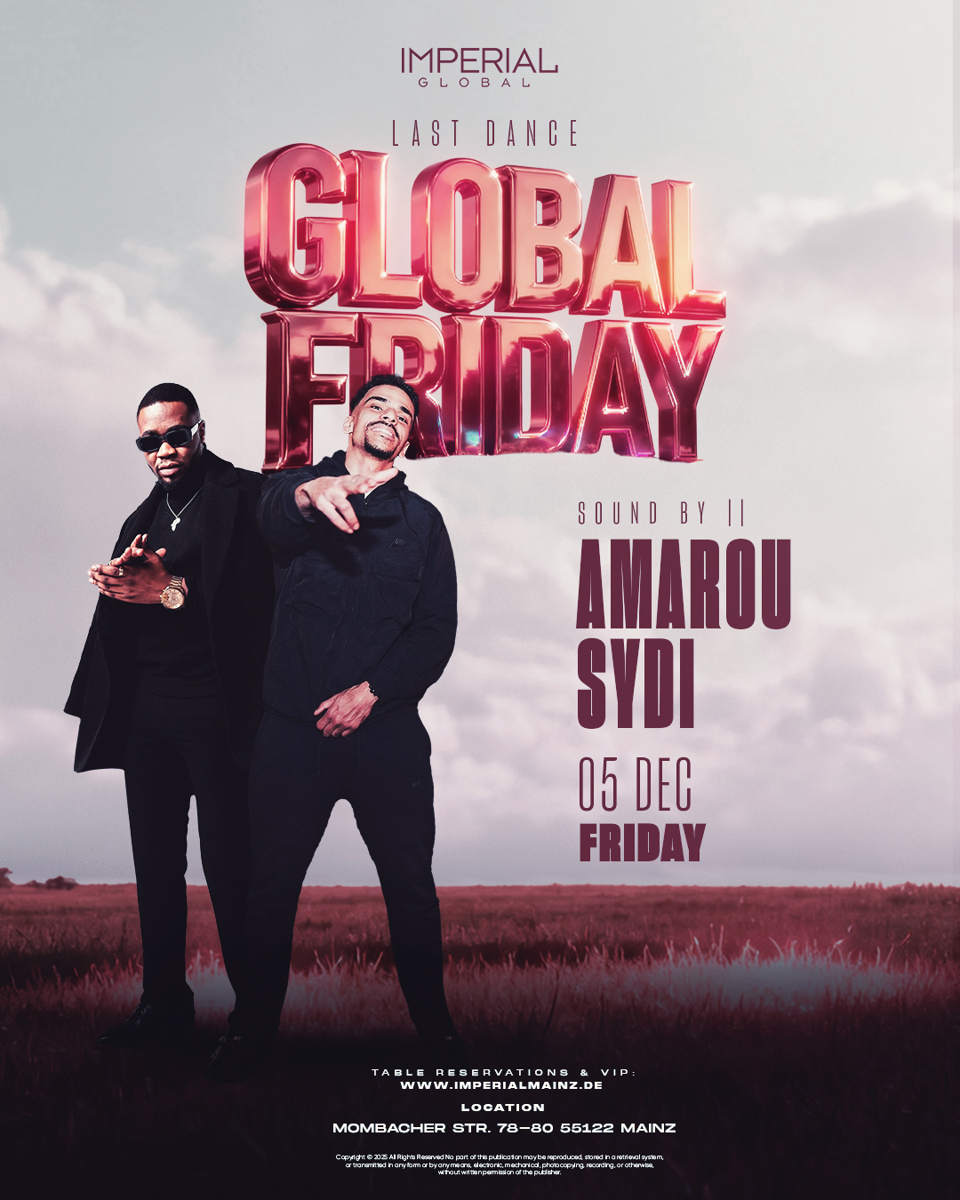 Global Friday: Last DanceEventbeschreibungAm Freitag, den 5. Dezember, lädt das Imperial Mainz zum Global Friday – Last Dance ein. Dieser Abend steht ganz im Zeichen internationaler Club-Sounds und urbaner Atmosphäre.Die…
