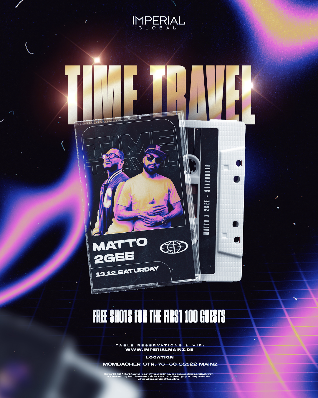 Time TravelEventbeschreibungAm Samstag, den 13. Dezember, nimmt das Imperial Mainz seine Gäste mit auf eine musikalische Zeitreise. Unter dem Motto Time Travel erwartet die Besucher ein Mix aus modernen Club-Beats…