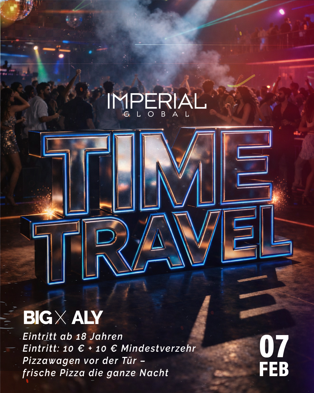 📅 Samstag, 07. Februar 2026 | 📍 Imperial Global | 🎧 DJ BIG ALY Die Ü30-Party für alle, die stilvoll feiern wollen.Beste Musik von früher bis heute, eine reife Crowd…